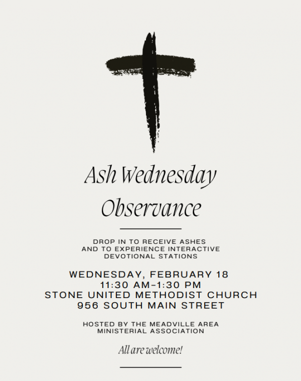 The Meadville Area Free Clinic's Pass It On program will be holding a Durable Medical Equipment Drive on February 21, 2026 from 9am-Noon.